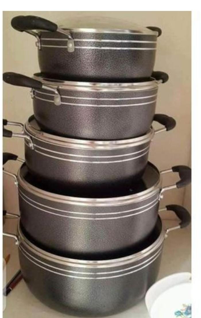 Product Features Eco-Friendly Granite Coating: Featuring a 5-layer PFOA and PTFE-free non-stick surface that requires minimal oil for healthier cooking and effortless food release. Space-Saving Stackable Design: The unique tapered shape allows all five pots to nest perfectly within one another, reclaiming up to 60% more shelf space in your cabinets. Stay-Cool Ergonomic Handles: Equipped with heat-resistant Bakelite handles that provide a secure, comfortable grip while remaining cool to the touch on the stovetop. Tempered Glass Lids: Durable, shatter-resistant glass lids with steam vents allow you to monitor your cooking without losing heat or moisture. Multi-Stove Compatibility: Engineered with a flat, reinforced base compatible with gas, electric, ceramic, and halogen cooktops.