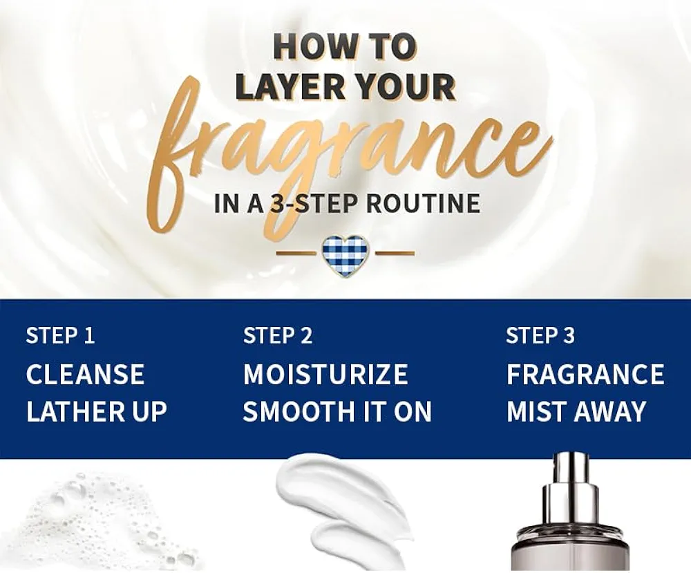 Fragrance. What it smells like: a clean, playful light flower shop delight. ●Fragrance notes: airy rose water, jasmine petals and creamy musk. ●Overview. What it does: provides intense hydration to relieve dry skin for 24-hour moisture. ●Why you’ll love it: ●Infused with the good stuff (natural essential oils, vitamin E, aloe, shea butter, cocoa butter and hyaluronic acid). ●Rich and luxurious for instant moisturization. ●Made without parabens or artificial dyes ●Dermatologist tested. ●Bottle made with 82% recycled plastic