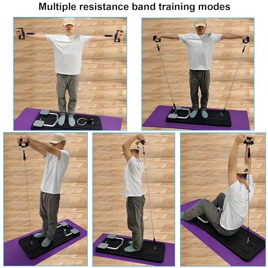 Brand: Jinsihou Fitness Board Foldable Pilates Board Ab Workout Equipment for Home Gym Automatic Rebound Multi-Function Exercise System with Resistance Band