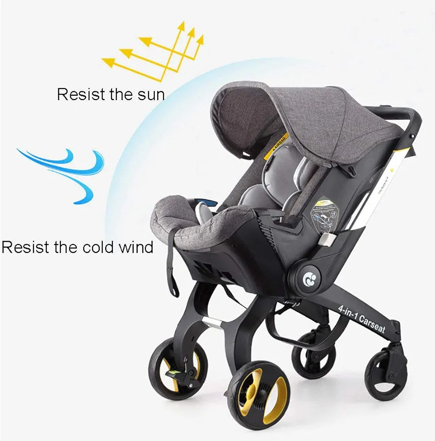 4 IN 1 STROLLER: This stroller is designed for newborns and can be used as a baby sleep basket, cradle, seat or stroller.5-POINT SAFETY BELTS:Baby capsule stroller equipped with a secure 5 point safety harness to ensure security while keeping your baby fit to the safety belt to feel comfortable.SAFETY WHEELS: Front wheel universal design, 360 rotation for easy to control direction. Rear wheel foot brake, it prevents the landslide accident of the cart and protects the baby.
