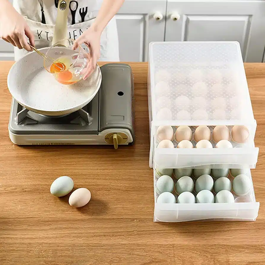 ️ Double-layer design provides you with a large capacity of 60 grids, which can store 30 eggs per layer.