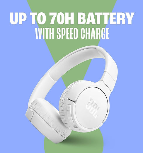 They feature Adaptive Noise Cancelling to minimize distractions and Smart Ambient modes (Ambient Aware and TalkThru) to let you hear your surroundings or conversations without removing the headphones.Long Battery Life:These headphones boast up to 70 hours of battery life, ensuring extended listening sessions.Connectivity:They offer Bluetooth 5.3 + LE Audio for wireless connection and can connect to two Bluetooth devices simultaneously, preventing missed calls while watching content on another device.Sound & Features:They deliver JBL Pure Bass sound and include features like hands-free calling, VoiceAware to hear your own voice during calls, and volume controls on the earcup.Â