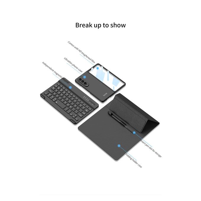 This galaxy z fold keyboard is bluetooth-compatible wirelessly connection without power and cable, the detachable magnetic keyboard can be split from the flip stand plain leather case. The portable and slim keyboard case can meet your travel, office, entertainment, watching TV all kinds of needs