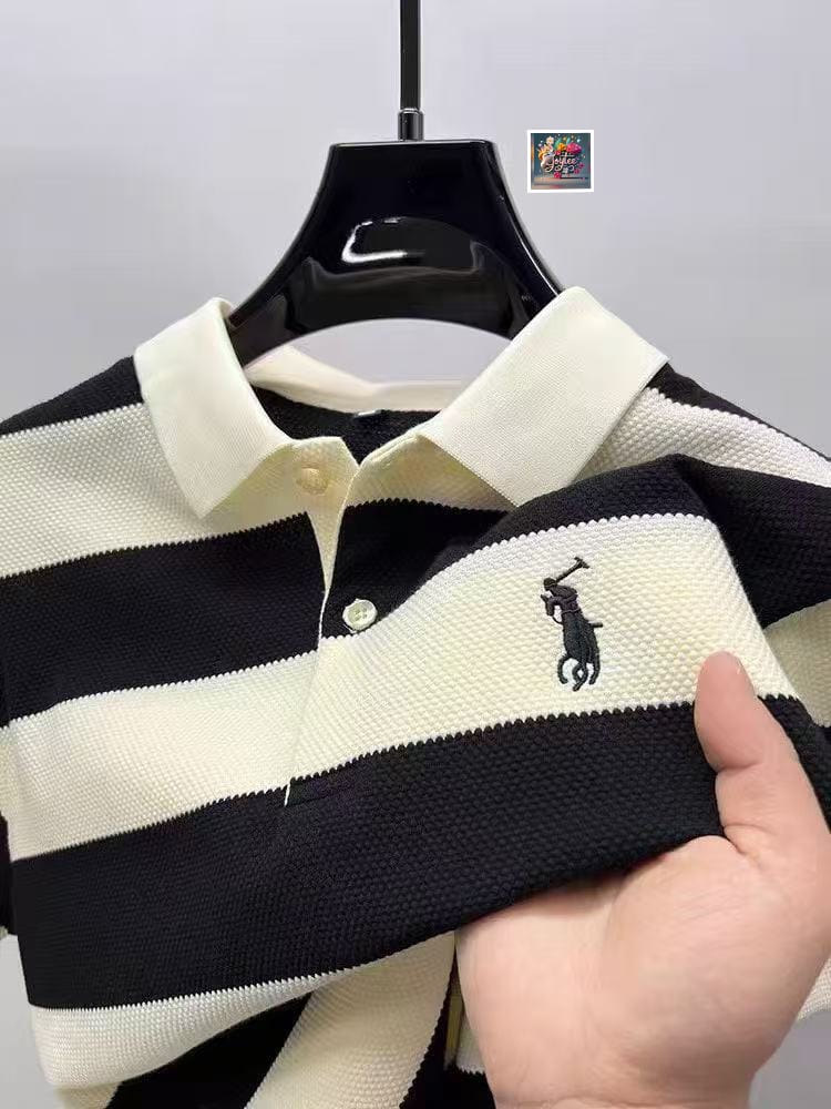 Be the first to review “Lapel polo Shirt Half Sleeve Trend Stripes T-shirt”