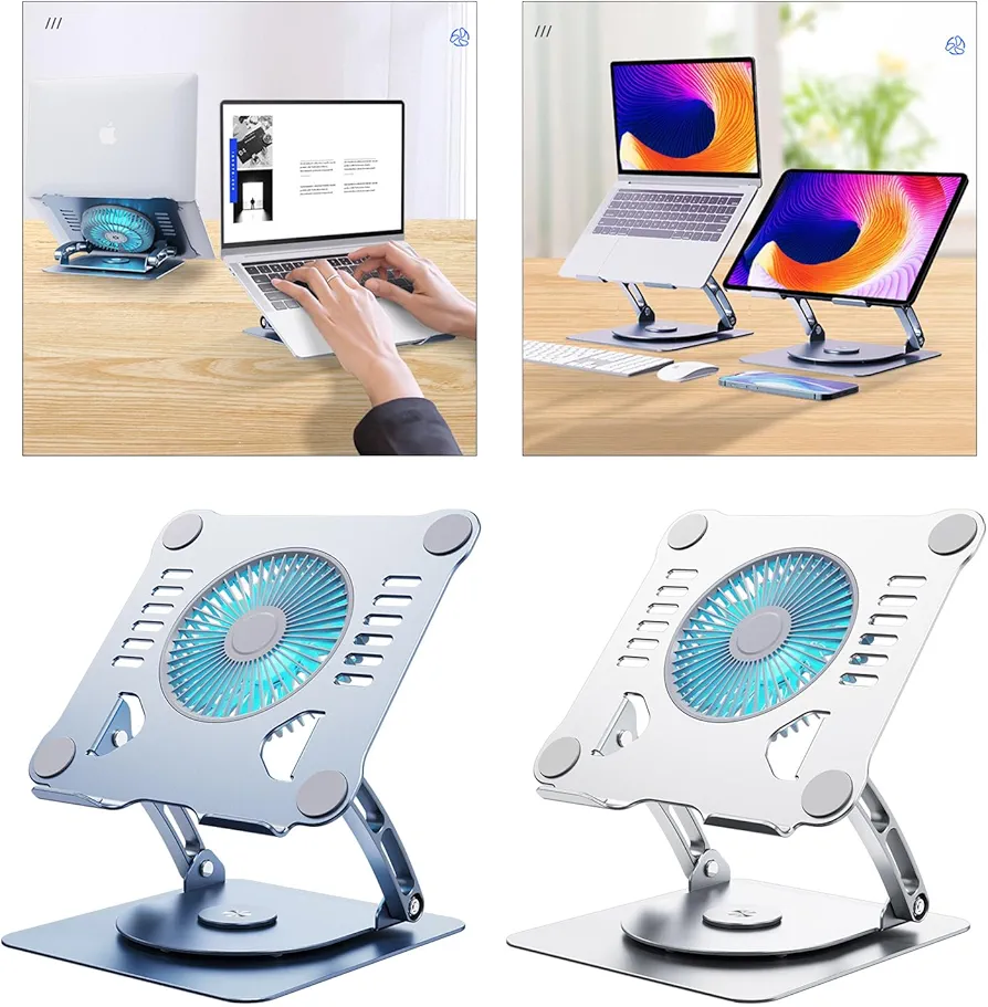 Rotating design: this holder has a rotating function that allows users to freely adjust the angle and direction to meet different usage needs.Multifunctional bracket: It combines support and heat dissipation functions, provides stable support and effectively solves the problem of laptop overheating.Adjustable height: This holder base supports the adjustment of multiple gear heights, so users can choose the most suitable height according to their needs, providing a comfortable viewing angle and user experience.Strong Heat Dissipation It can quickly reduce the temperature of laptops, effectively protect devices and improve performance.Game enthusiasts: provide a good cooling environment for players, reduce stagnation crashes of equipment due to overheating and improve the gaming experience.