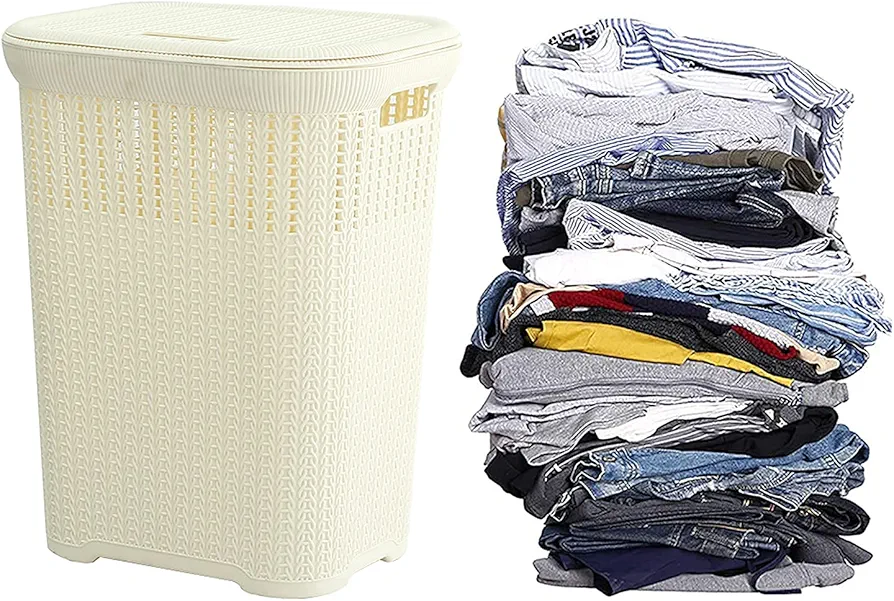 laundry basket: The color is fresh and elegant, and the hollow design has a large capacity. It is a dirty clothes basket and a storage basket. The detachable compartment design is convenient to distinguish all kinds of clothes and has a neat appearance;Ventilation and covering design: There are many small holes on the laundry basket, which can ensure that the laundry basket is ventilated, no peculiar smell, covering design, dustproof and pollution-proof, keep the clothes clean and make you feel more comfortable;Sturdy and soft handle: The easy-to-grip handle can maximize portability. The handle is made of environmentally friendly and healthy materials, so it is safe for children and pets and is a perfect substitute for traditional laundry baskets;Spacious interior space occupying a small space: a large storage basket, family clothes or children’s toys, can provide you with the best organization help. The laundry basket is convenient to carry when traveling/shopping/picnic, and it takes up very little space when not in use;Suggestion to you: Our shop has a lot of practical furniture. If you have enough time, please go to our store to buy. We believe that there is always something that can meet your needs;