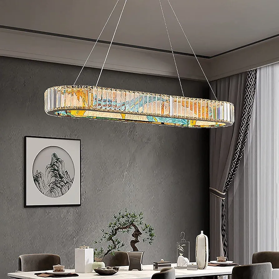 Unique Design: This round crystal chandelier is equipped with K9 crystal and three-color dimming glaze, which can provide dazzling, luxurious and romantic light, adding elegance and sophistication to your home.Dimension: Single Circle Round Model 38 Watts 50*12cm, 45 Watts 60*12cm, 60 Watts 80*12cm, 80 Watts 100*12cm, 108 Watts 120*12cm. Double Circle Round Models 98 Watts 50+80cm. Single Circle Oval Models. 50 Watts, 80*30*12cm. 150cm Hanging Wire, Adjustable. Please make sure the dimensions of this crystal pendant light can be compatible with your prepared space or not.Bulb Requirement: Tri-color LED dimming (bulbs included), maximum 60W, wires and plugs have passed Certification, beautiful and stunning crystal pendant lights, very beautiful, it looks like it is a more expensive installation and picturesEasy Installation: Assembly is required for this crystal pendant light, but it’s definitely worth it. We provide all mounting hardware and an installation manual for quick and easy installation. If you have any questions, please contact us directly and we will resolve the issue as soon as possible.Wide Application: The stained glass pendant lights are a perfect addition to living room, bedroom, dining room, kitchen island, dining table, breakfast table, billiard room over pool table.