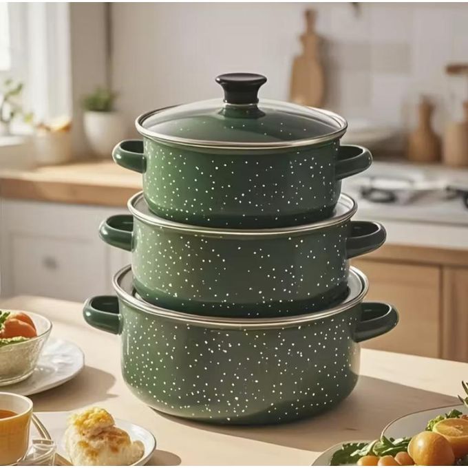 [Enamel Material]: These soup pots are made of high-quality enamel, with a smooth and delicate coating inside and out. They withstand high temperatures while effectively locking in the natural flavor and nutrients of the ingredients. Furthermore, they are easy to clean and maintain for long-lasting use.