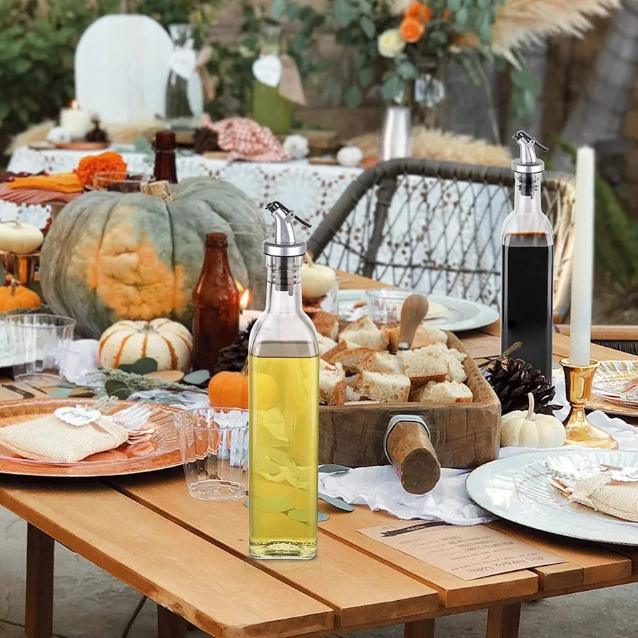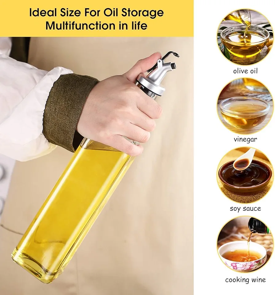 【Eco-Friendly Materials】For environmental protection,olive oil bottle is made of lead-free glass which is 100% healthy and eco-friendly, thick, durable. The volume is 500ml (17 oz). Beautiful and practical bottles can create a better space for your home. 【Control Oil Dispensing】Oil bottle controls the amount of oil, dressing, or vinegar poured into your dishes, reduce the intake of fat and calories, which is beneficial to the health of the heart, thus eating healthier. 【Leak-Proof Design】With anti-drip design, the oil dispenser can effectively prevent oil leakage, keep it clean and hygienic at all times, can keep the contents always fresh, and will not make a mess in the kitchen. There is a small cover on top to keep dust and bugs out.
