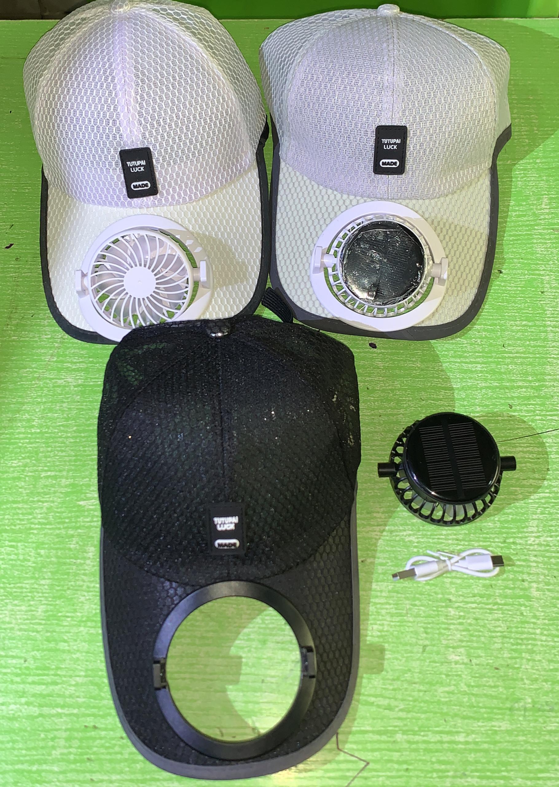 Key Features Integrated Cooling Fan: Each cap features a small, circular fan built into the brim, positioned to provide a direct breeze to the face. Solar Powered: The fans are equipped with integrated solar panels, allowing them to operate using sunlight during outdoor use. Rechargeable Capability: Includes a USB charging cable, indicating that the fans can also be powered by an internal rechargeable battery for use in shaded areas. Breathable Design: The caps are constructed from a lightweight, mesh-like fabric to promote airflow and heat dissipation. Versatile Styles: Available in multiple colors, including classic black, white, and grey, to match different preferences. Modular Assembly: The fan units are removable, allowing for easier cleaning of the cap or separate charging.