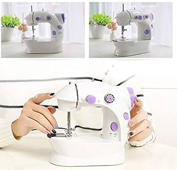 [COMPACT & PORTABLE]The overall weight of the sewing machine is as light as 1.6 lbs. Size: 7.9 x 7.6 x 5 inches. It breaks the tradition, is novel in style, small and portable. Fits for carrying around and can sew most light and thin fabrics. [MULTI-FUNCTIONAL]The product comes with double-speed for you to choose from. Dual-speed adjustment is more concise and convenient. Two power modes: 4 AA batteries(product without battery)/external power supply. Double-switch: the pedal and the manual switch. [PROFESSIONAL DESIGN]The professional tube slot design makes it easy to sew cuffs. Equipped with a LED lighting function, help you see more clearly and reducing damage to your eyes. The bottom line plus the upper thread is double-threaded, which is firm and easily thread. With a thread cutter and winding function.