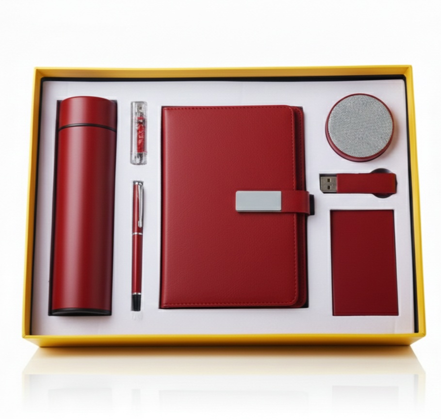 Designed for the modern professional, this curated collection combines utility with luxury. Every piece features a matching finish—available in sophisticated Champagne Gold or bold Deep Red—ensuring your brand or gift makes a lasting impression.