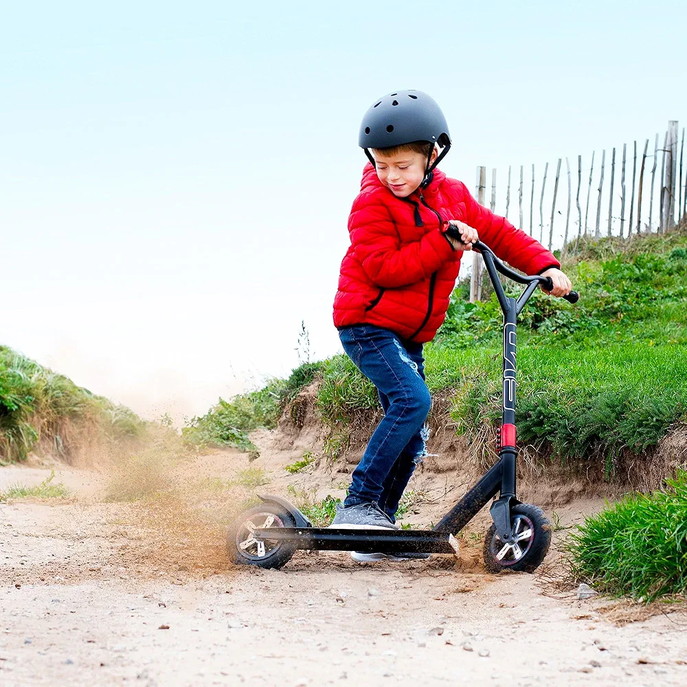 – This Scooter is perfect if your child is searching for a smart and fashionable scooter. Drive it off-road or simply cruise the streets. Any challenge won’t stop your child. While your child navigates the off-road tracks, you can watch as they practice stunts and tricks on this scooter. From practicing stunts and tricks on the street to racing around the skatepark or even entering competitions this scooter will be perfect for your kids. Suitable for children aged 6 to 18+ years, it has a weight capacity of 100kgPERFECT FOR OFF ROAD SCOOTERING – This Scooter is perfect for any child ready to start their off road tricks & ramps adventure. With a handle height of 90cm and a sturdy alloy frame, there is simply nothing your child cannot achieve. From practicing tricks and stunts to nailing those downhill scooter sprints. With the 200mm air wheels, your child will have plenty of grip while they race around the dirt track or venture through the deep dark woods.IDEAL GIFT OR PRESENT – This Scooter is the ideal gift for any child who is scooter mad. Not only does it offer this smart and stylish design but, it also offers endless hours of fun. Whether for Birthdays, Christmas or even just a special treat watch as your Childs eyes light up. Allow your child to develop their motor skills with this scooter as they increase their coordination, endurance and strength. This scooter is perfect for getting your child off their tablets and getting them outside.
