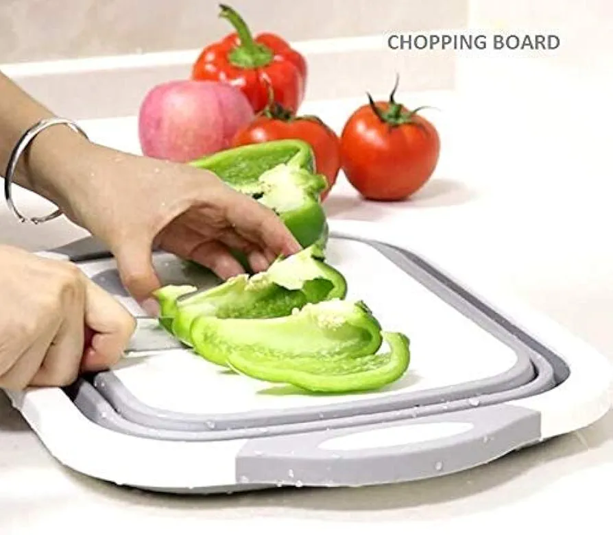 GOOD KITCHEN HELPER: New upgrade multi-function 4 in 1 food grade collapsible basket with draining plug, it can be used as a cutting board after folding, as a dish washing basin, drain basket and storage basket after opening, It’s a must for your kitchen! PREMIUM QUALITY: Made from high-quality, BPA-free, PP plastic and siliconized rubber, the smart container is antimicrobial, lightweight, does not retain odors and is safe for food. Highly durable, it will not crack, warp or split, giving you many years of use. Because it is non-porous, the cutting board is gentle on knives and does not harm or dull blades. Spill-proof trenches prevent liquid overflow, keeping the kitchen clean and healthy SPACE-SAVING: Portable folding design can save your kitchen sapce and convenient to storage when not in use. Perfect for a RV, apartments or any place where space is valuable, It’s also great for outdoor activities, travel, camping, BBQ and picnics. MULTI-FUNCTION: The sink basket can be mounted on the sink as a dish tub, washing drain basket, ideal for washing and draining all types of fruits, vegetables, salad leafs and pastas. Or simply as an everyday use chopping board. COLLAPSIBLE, FOLDING, SPACE SAVING DESIGN: The versatile bin is expandable and collapses to 1/3 (about 2 inches) of its original height. It folds into a compact shape for space saving, easy storage and carrying. Easy to pack and transport, it is the perfect cooking utensil for outdoor, garden, patio, back deck, camping, picnics, BBQ, caravanning, fishing These basket are foldable, so it do not take up much needed room in your kitchen cupboards. Designed with your convenience in mind, sturdy handle for comfortable holding when draining water or moving food. Greatly enhance your effectiveness of kitchen work. The plug drainer bottom lets water drain fast and easy, it can clean vegetable easily, widely used for draining most foods like potatoes, green beans, carrots, spinach and other veggies.